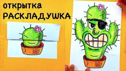 КАКТУС - ПИРАТ рисуем СЮРПРИЗ - Открытка Раскладушка