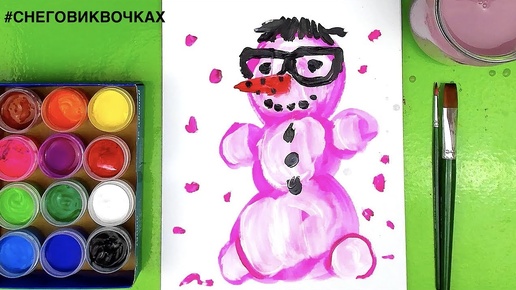Снеговик ГУАШЬ рисуем на Новый год Краски для детей