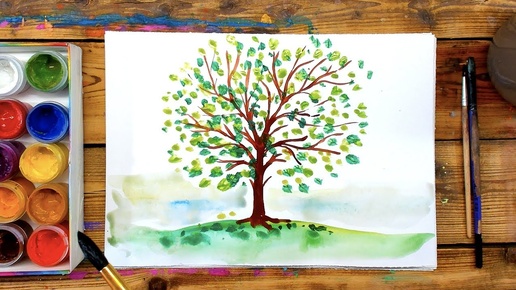 Летнее дерево / краски ГУАШЬ от РыбаКит