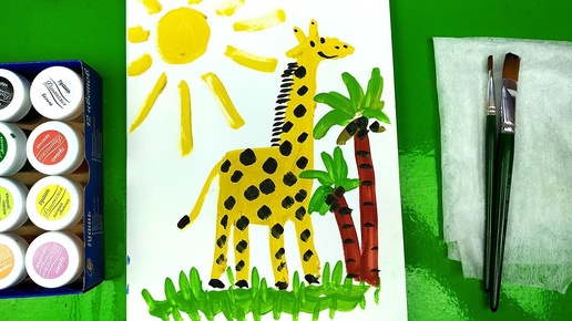 Как нарисовать ЖИРАФА - Урок рисования красками Гуашь