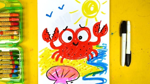 Как нарисовать КРАБИКА цветными мелками