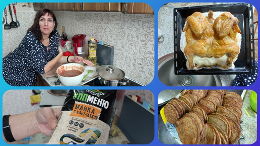 Оладьи из печени 🥞. Курица, запечённая на соли 🍗. Сытный обед 🍽️. Обзор покупок 🛒.