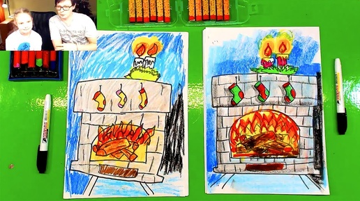 Теплый КАМИН на Рождество рисуем с Рыба Кит папа рисует