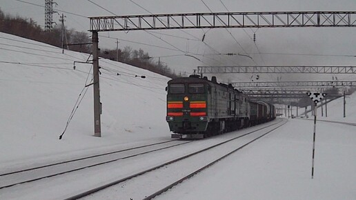 Тепловоз 2ТЭ10М-3035. Тяжко на подъёме. Звук 10Д100. (720р)