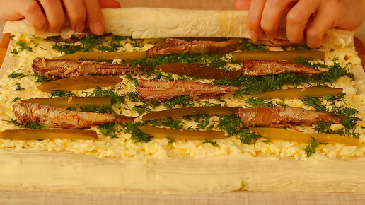 Точно буду готовить такую закуску на Новый год. Покупаю банку шпрот и лаваш. Век живи век учись