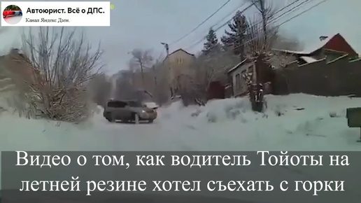 Видео о том, как водитель Тойоты на летней резине хотел съехать с горки
