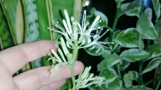 Зацвела Сансевиерия Лауренти (Sansevieria trifasciata Laurentii) на даче. Декабрь 2024.