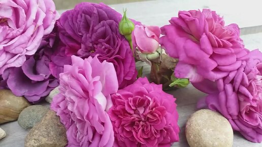 Пурпурные и персиковые сорта роз. Крупно. Кратко