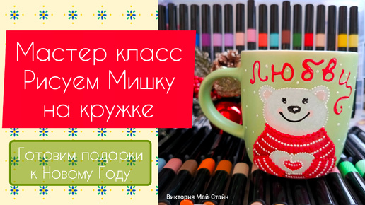 Рисуем Новогоднего Мишку на кружке. Мастер класс.
