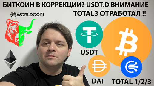 🚨ЧТО ФОРМИРУЕТ USDT ДОМИНАЦИЯ? TOTAL3 ОТРАБОТАLА! ПО АЛЬТЕ РАСПРОДАЖА. ТЕХ АНАЛИЗ #BTC #USDT #DAI #WLD