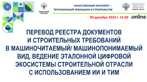 ВИДЕО. Перевод реестра документов и строительных требований в машиночитаемый/машинопонимаемый вид, ведение эталонной цифровой экосистемы