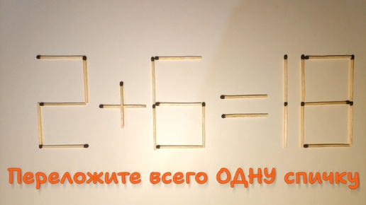 Переложите 1 спичку так, чтобы получилось верное равенство. Задача со спичками #3