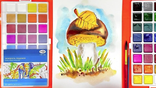Рисунок АКВАРЕЛЬЮ для детей - Как нарисовать ГРИБОК осенью