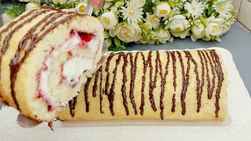 Новогодний Бисквитный рулет с малиной. Тает во рту. Очень нежный. Малиновый рулет к чаю