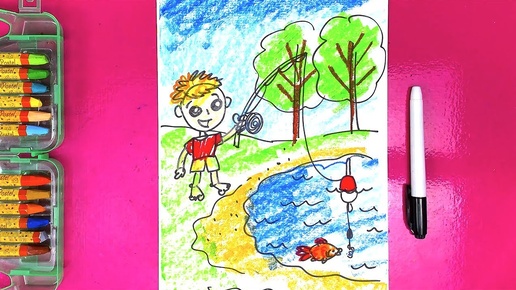 РЫБАЛКА урок рисования для детей - как нарисовать Рыбалку