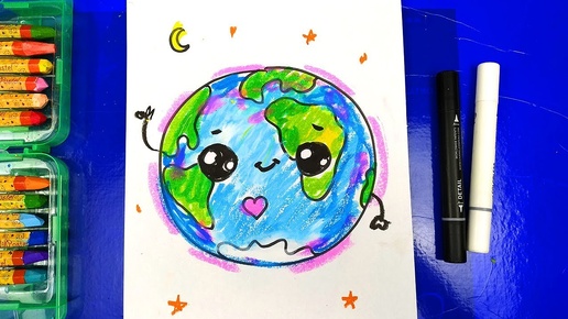 Наша ЗЕМЛЯ я рисую планету цветными мелками