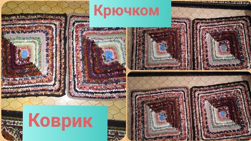 Архивное видео.2019 Квадрат крючком. Коврик из ненужных вещей
