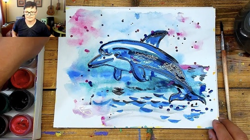 Как нарисовать ДЕЛЬФИНА рисуем красками ГУАШЬ от РыбаКит