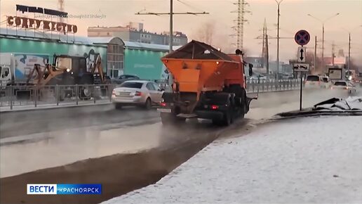 В Красноярске вода залила проезжую часть на проспекте Красноярский рабочий
