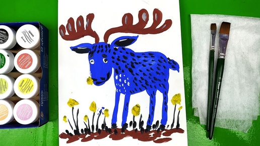 Синий ЛОСЬ рисууем красками ГУАШЬ от РыбаКит