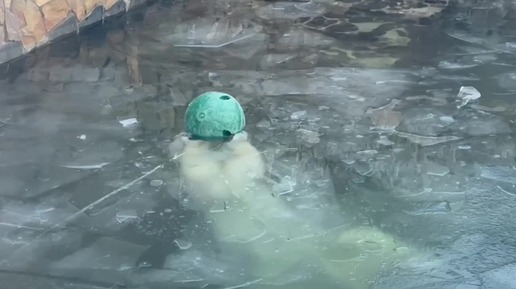 Ленинградский зоопарк показал купание белой медведицы Хаарчааны в личном бассейне