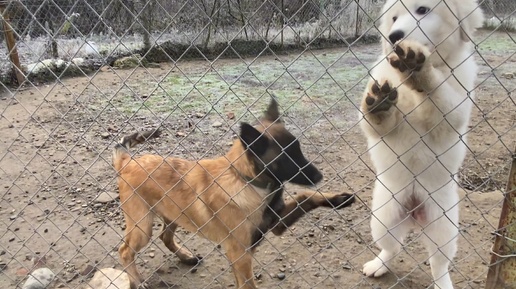 Малинуа и Мареммо-Абруццкая овчарка на прогулке