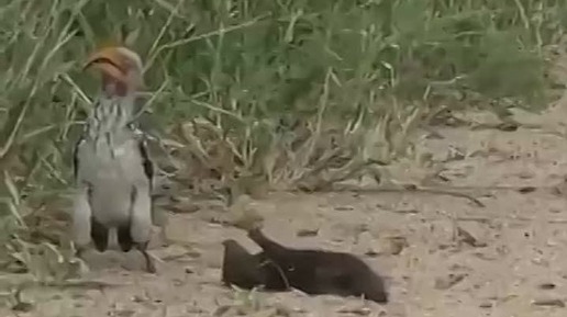 Норка подумала что птица её съест и притворялась мёртвой.🤣🤣🤣