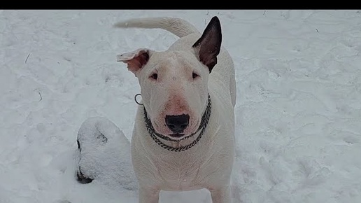 Этуаль бультерьер радуется снегу❄️ питомник Кастропуло Крым