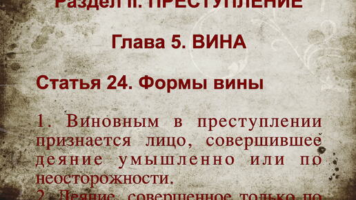 Формы вины СТАТЬЯ 24 Уголовный кодекс Российской Федерации