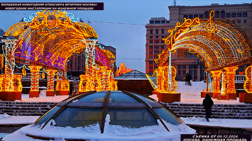 Манежная площадь и её яркие новогодние инсталляции. Волшебная новогодняя атмосфера вечерней Москвы (2024-2025)