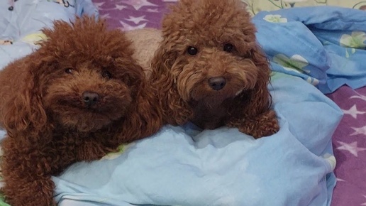 пудели кроватные Нептун и Шаганэ рядышком питомник Кастропуло Крым
