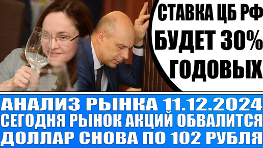 Анализ рынка 11.12 / Ключевая ставка Цб Рф будет 30% годовых / Доллар по 102 / Рынок акций обвалится