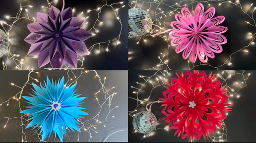 своими руками декор к Рождеству 🎄🎄🎄четыре снежинки из бумаги ❄️❄️❄️