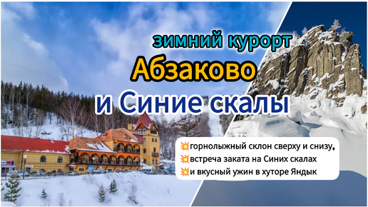 Зимний курорт Абзаково и Синие скалы: горнолыжный склон сверху и снизу, зоопарк, встречаем закат на Кульсугадыташ