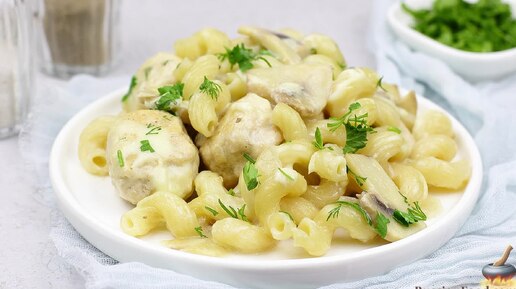 Сочные макарошки. Куриные фрикадельки с макаронами, в грибном соусе