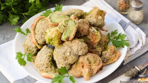 Сверху получается румяная корочка, а внутри – сочная брокколи. Брокколи, запечённая в кляре