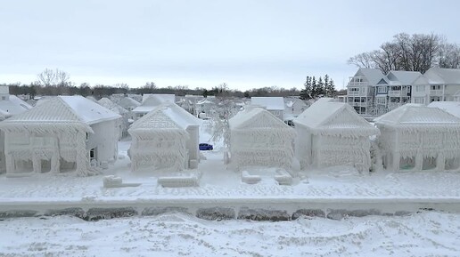 Дома в Онтарио (Канада) сковало льдом после шторма