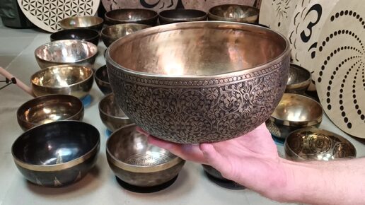 Кованая поющая чаша Back side heavy carving ( 20 см, нота: Соль #, 207 Гц) / shamanic.moscow
