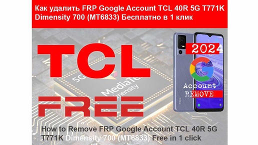 TCL 40R 5G T771K Mediatek Dimensity 700 (MT6833) FRP Google Account как удалить БЕСПЛАТНО в 1 Клик за 2 минуты