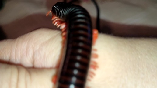 Кивсяк африканский красноногий (Ephibolus pulchripes) многоножка вышел на прогулку