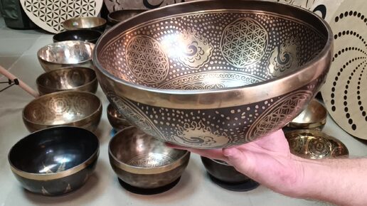 Кованая поющая чаша Flower of life ( 26 см, нота: До, 130 Гц) / Singing Bowl / shamanic.moscow