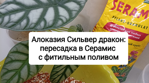 Алоказия Сильвер дракон: пересадка в Серамис с фитильным поливом