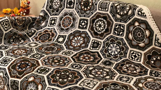 АНОНС МК .Плед крючком " Персидская плитка" Для начинающих. (Плед в наличии , Размер Ш.2.05 Д.2.48)