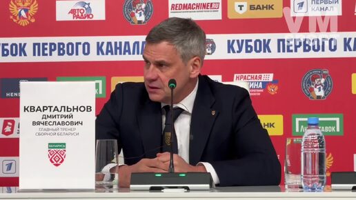Наставник сборной Беларуси Дмитрий Квартальнов после волевой победы над сборной Казахстана на Кубке Первого канала