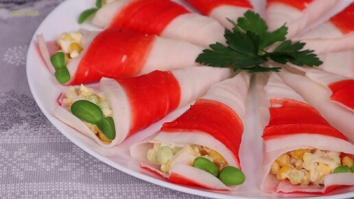 Закуска "Фламенко" с крабовыми палочками на Новогодний стол. Сочетание всем знакомое, но оригинальное исполнение.