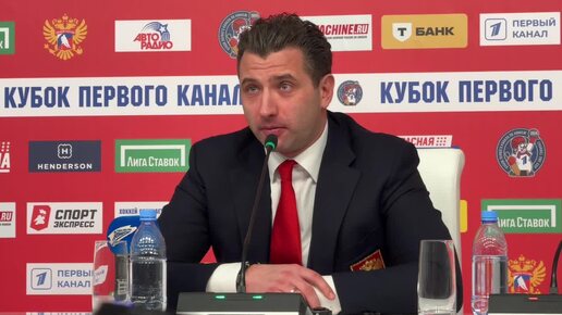 Наставник сборной России 25 Роман Ротенберг после уверенной победы нашей команды над сборной мира КХЛ на Кубке Первого канала