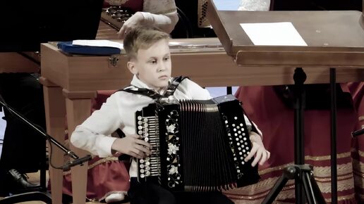 Далее: Исполняет оркестр кафедры НИНР руководитель Заслуженный артист РФ В. И. Маляров "Многолетие" (Е. Дербенко)