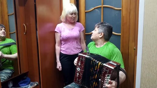 Под окном широким на любительской гармони поет жена и играет муж семейный дуэт