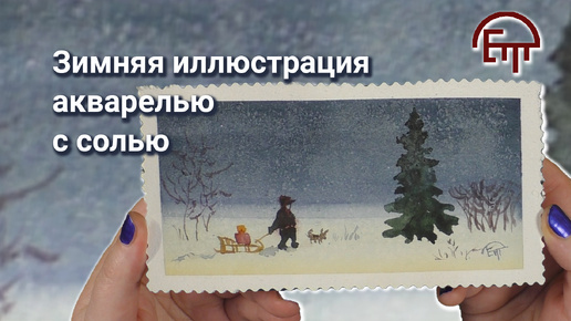 Зимняя иллюстрация акварелью с солью