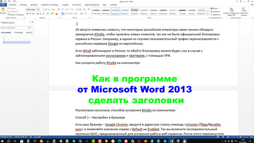 Как в программе от Microsoft Word 2013 сделать заголовки
